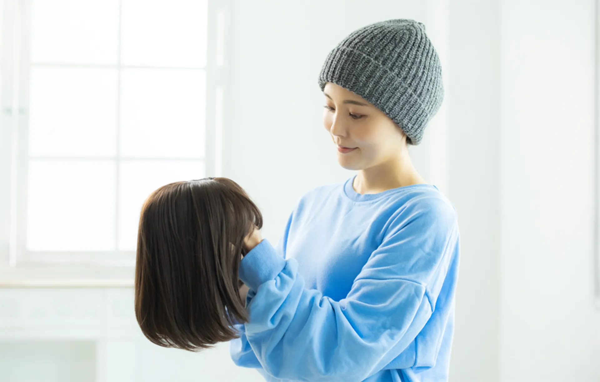 抗がん剤治療などによる、外見のお悩みや脱毛症、肌トラブルなどで人目に触れたくない方のご要望を伺い、ウィッグやエピテーゼなどのご提案をいたします。